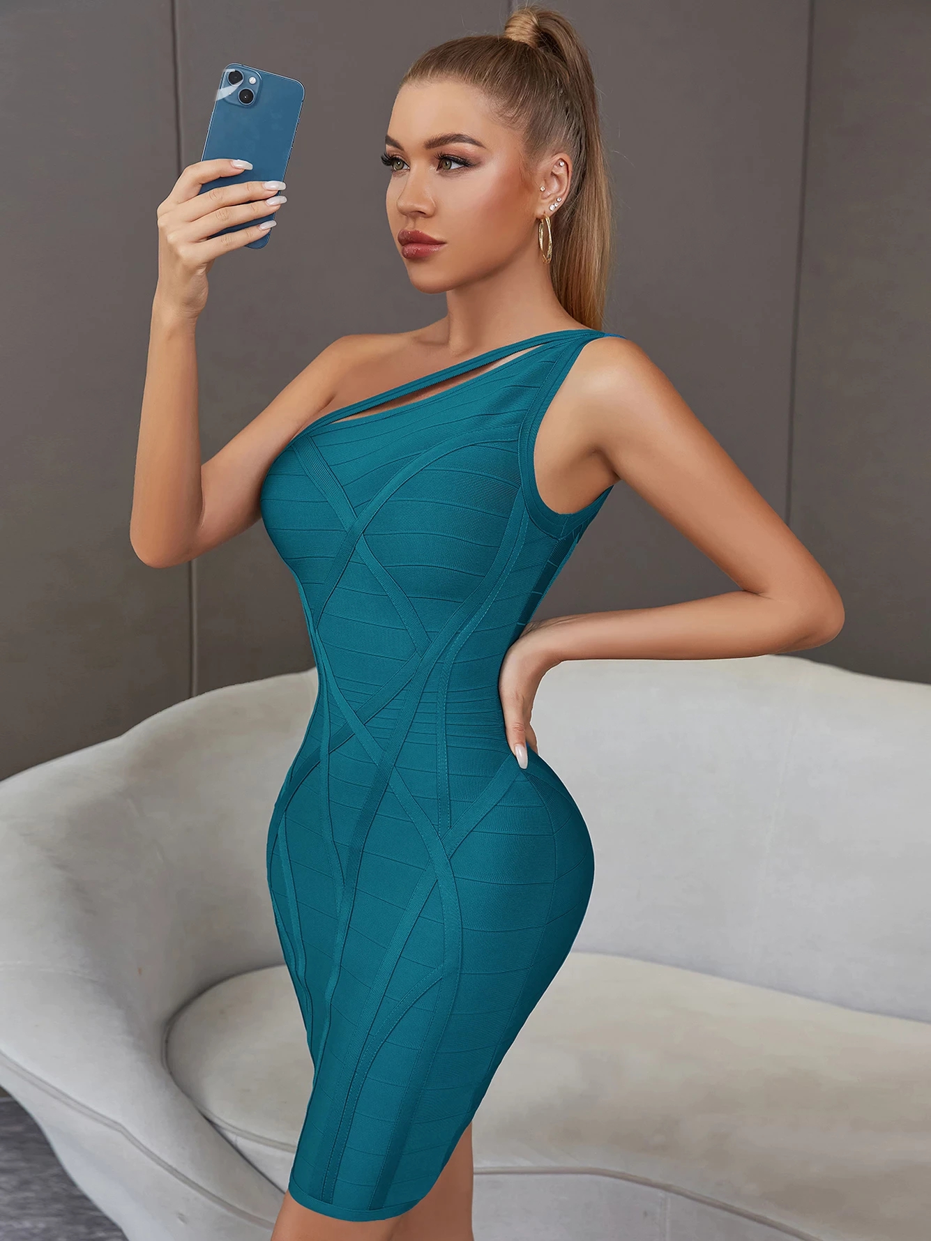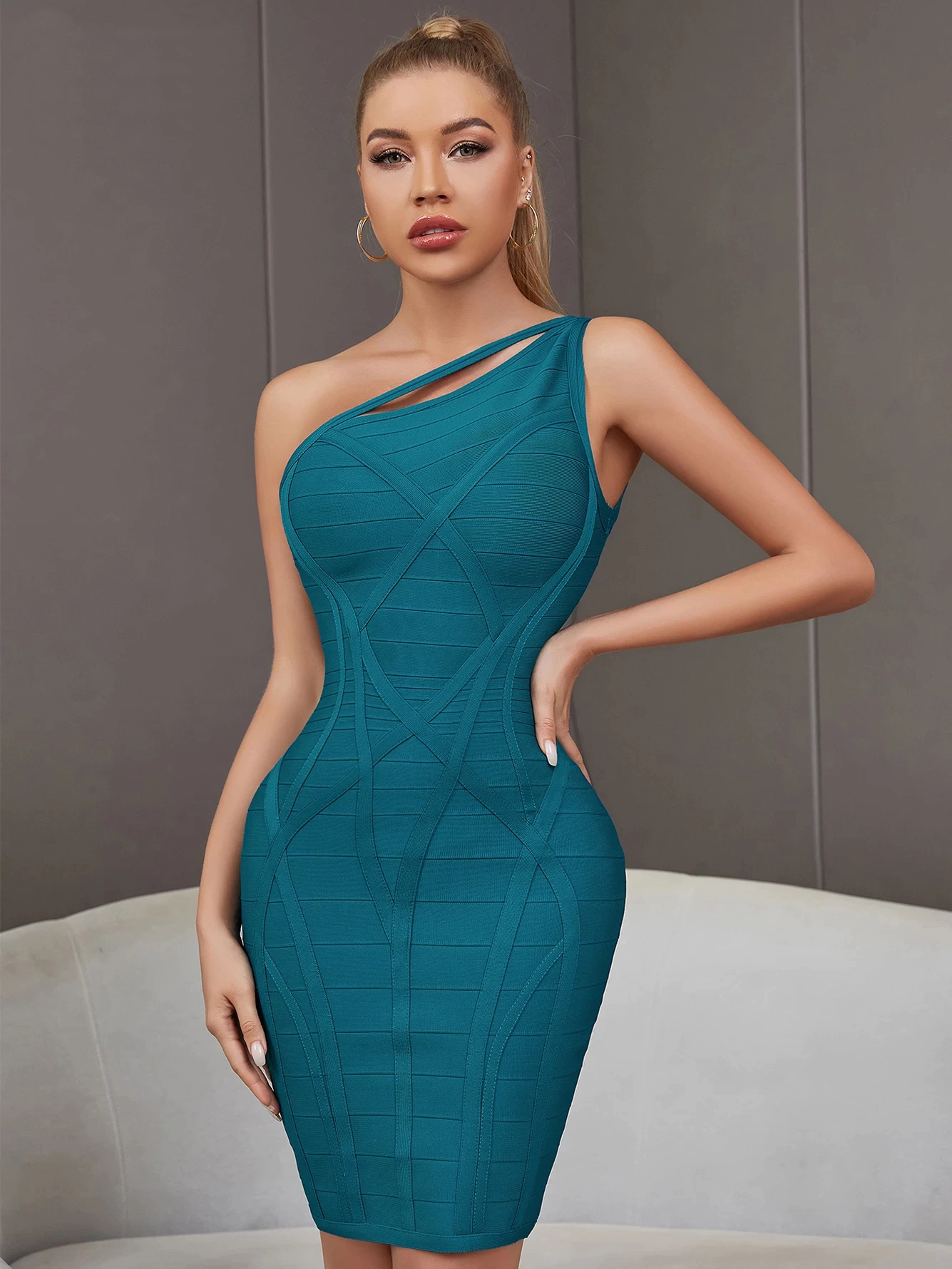 Resplandeciente vestido tipo Bandage ajustado con un hombro al aire. Exclusivo de diseñador para eventos especiales, realza tu figura e impacta. Confeccionado de poliéster con calidad y acabado garantizado.