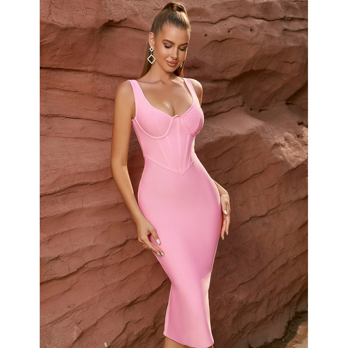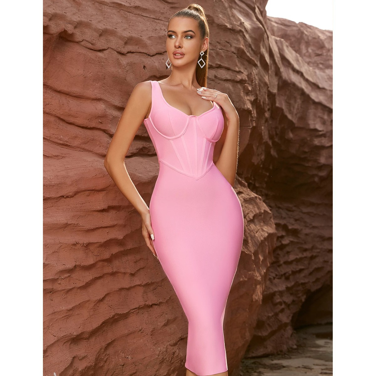 Impresionante vestido tipo Bandage, sujeto a un hombro, con escote muy sexy. Pegado al cuerpo para modelar la figura de inicio a fin. Confeccionado íntegramente de poliéster de alta calidad y con acabado de primera garantizado.
