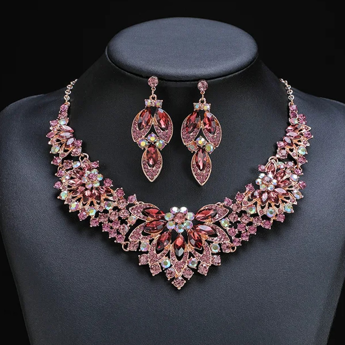 Exclusivo Set de Collar Con Aretes Rosa