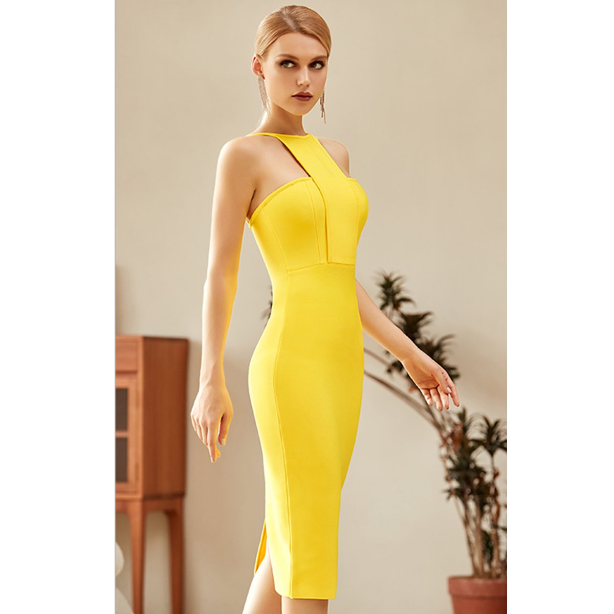 Encantador vestido estilo Bandage, sin tirantes, sin mangas, confeccionado de poliéster de alta calidad, ideal para una fiesta, muy elegante, de acabado A1 y diseño exclusivo.