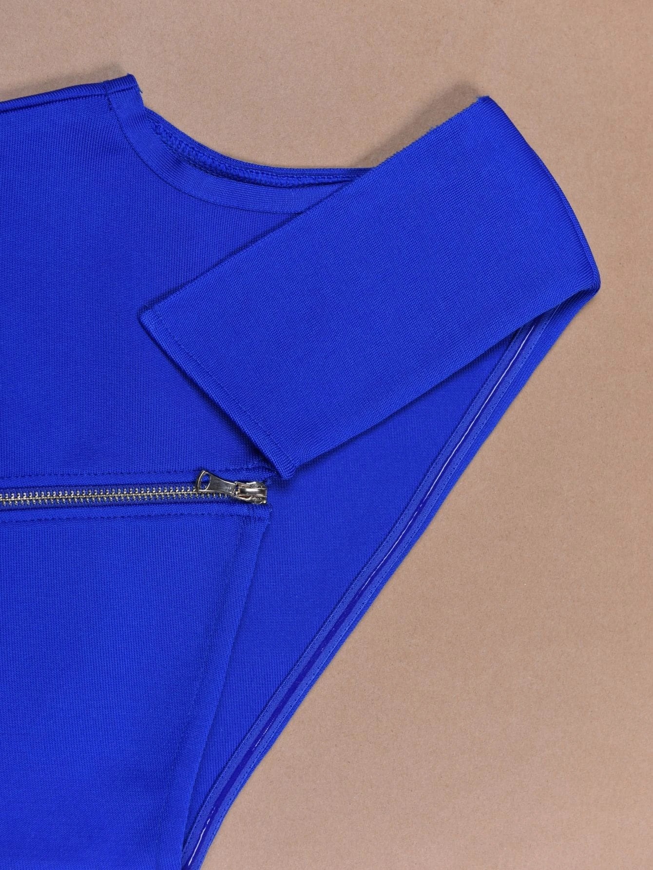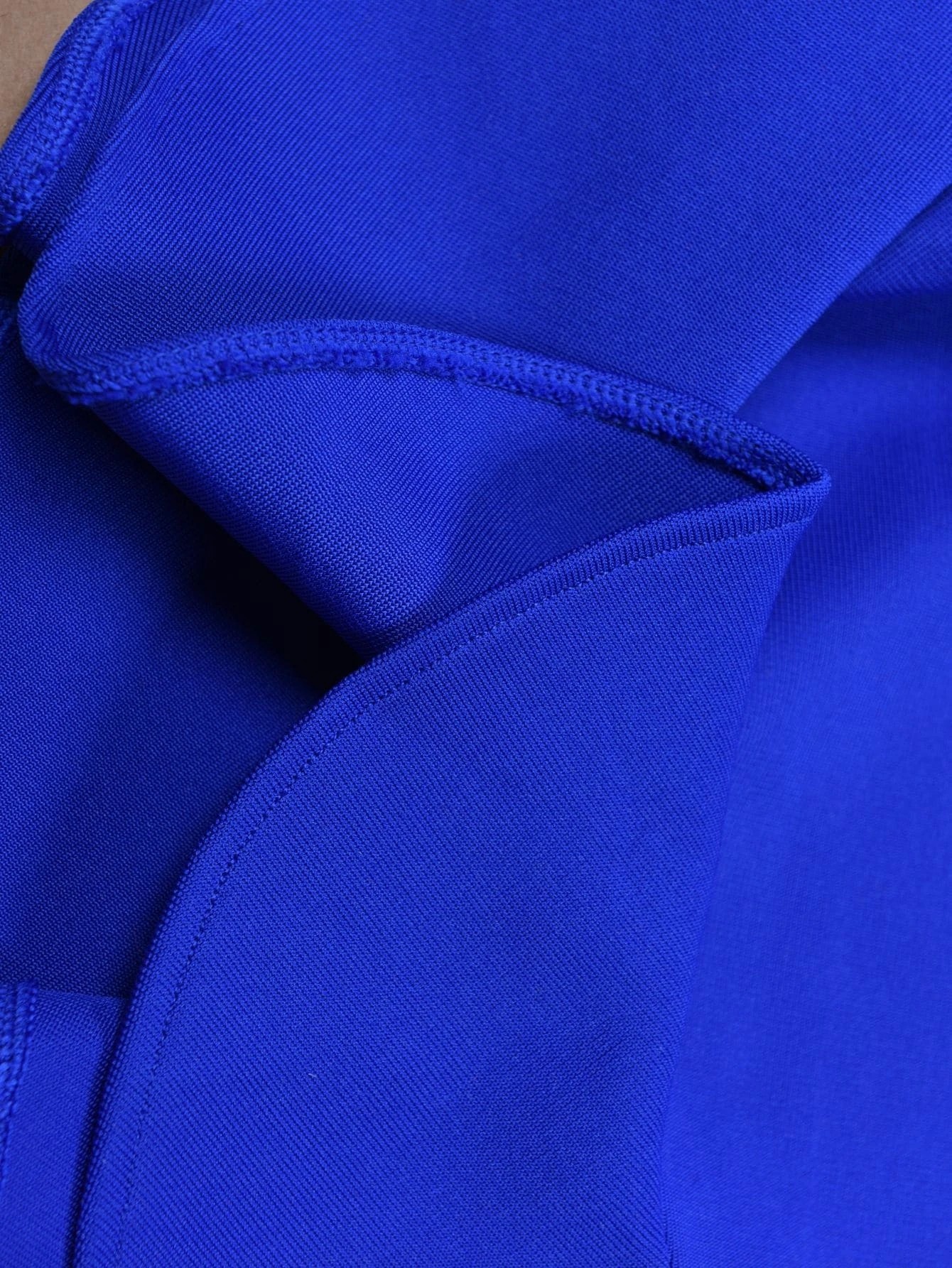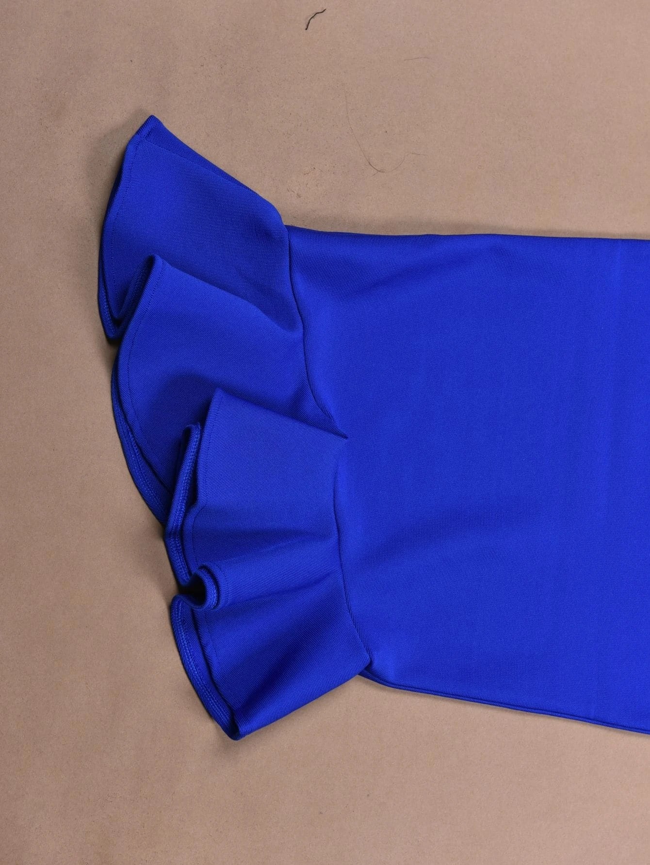 Hermoso vestido azul, tipo Bandage para mujer, sujeto a un hombro, sin mangas, con volantes en la parte inferior, ideal para sorprender e impactar con este exclusivo diseño. Confeccionado íntegramente de poliéster de alta calidad, moldea tu figura.