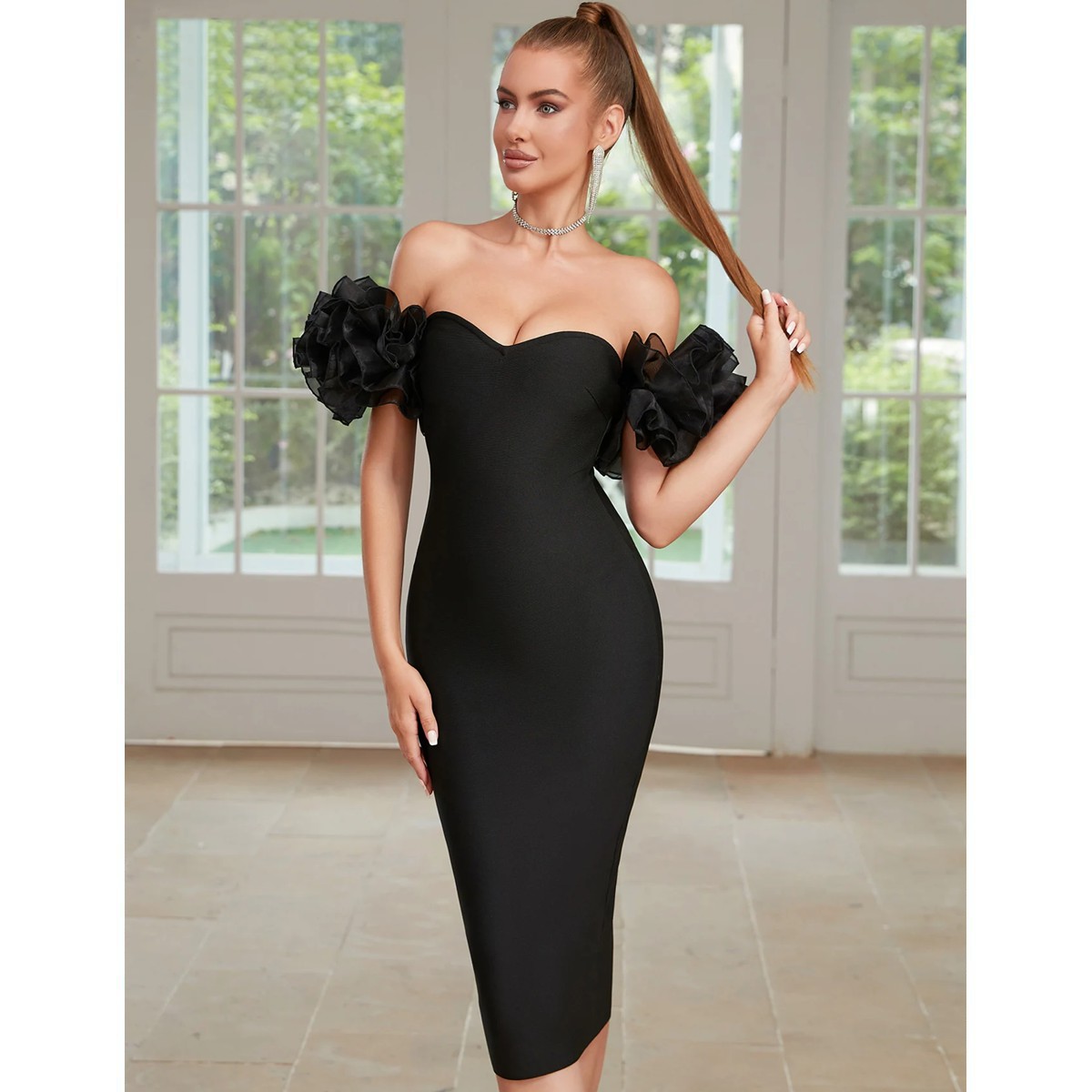 Exclusivo vestido tipo Bandage, ultra elegante, con escote pronunciado en la parte frontal y posterior, sin mangas, diseñado para celebridades, reuniones y eventos especiales. Fabricado íntegramente de políester de alta calidad.