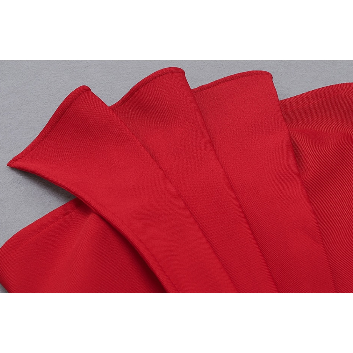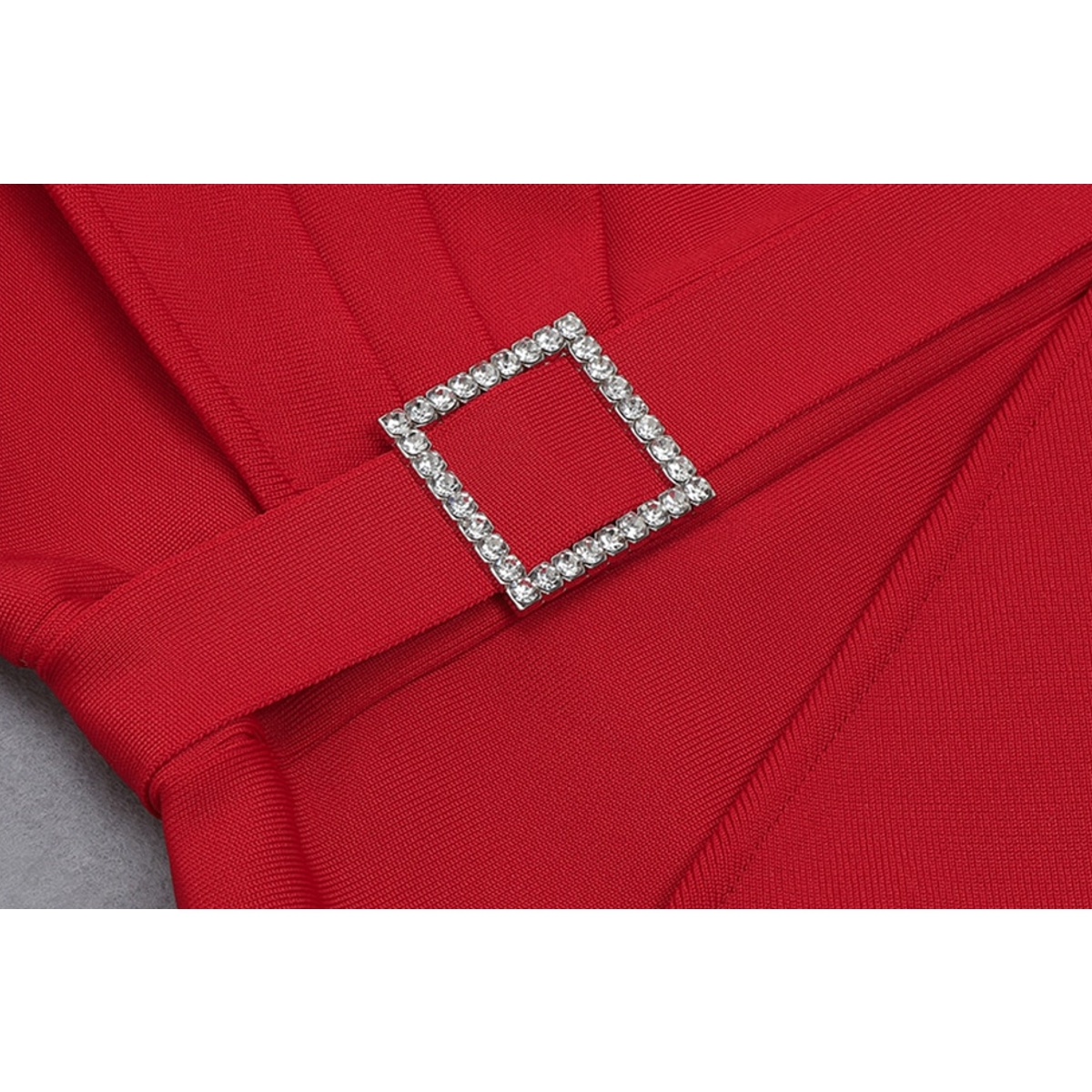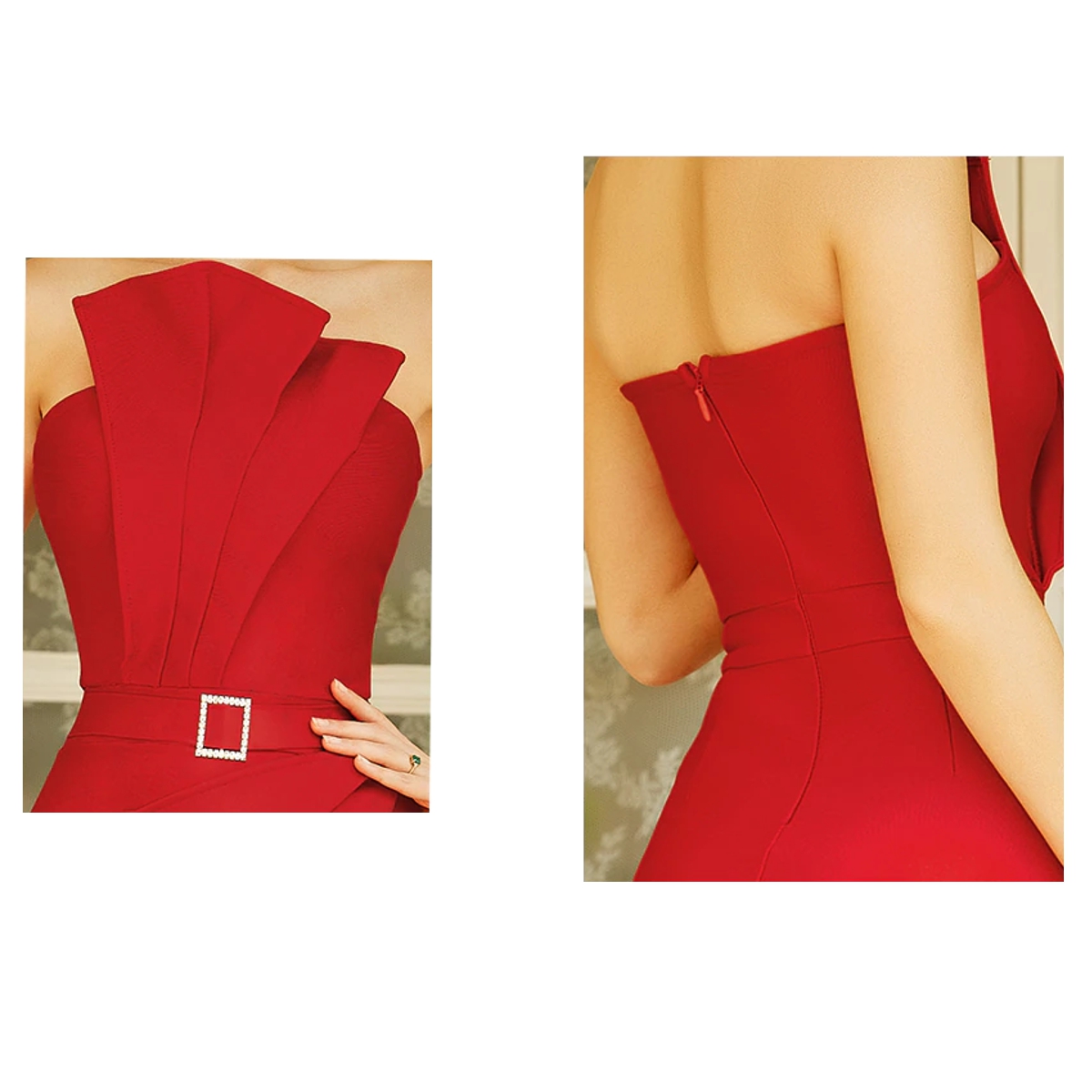Encantador vestido rojo sin tirantes para mujer, tipo Bandage con volantes, muy sexy, con brillantes en la cintura, fabricado con poliéster y spandex, ideal para una fiesta o evento especial.